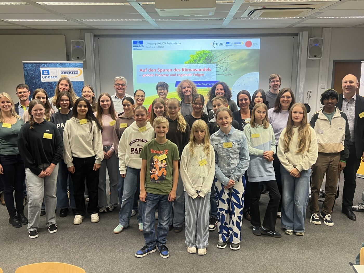 Beim bereits 4. Klimacamp des Klimastationennetzwerks der UNESCO-Projektschulen in Deutschland nahmen dieses Jahr Schulen aus Verden, Wuppertal, Leipzig, St. Ingbert, Neumarkt, Emden und Göttingen teil. Insgesamt durfte das rgeo-Team sieben Lehrkräfte und 23 Schülerinnen und Schüler aus der Sekundarstufe I für drei Tage am Institut für Geographie & Geokommunikation willkommen heißen. Das abwechslungsreiche Programm umfasste neben fachlichem Input, Laborversuchen, der Arbeit mit digitalen Geomedien und einem Serious Game zur Klimaanpassung auch einen Ausflug zur Klima Arena in Sinsheim, eine Film-Vorführung und einen Fachvortrag zu globalen Klimaprozessen und ihren regionalen Auswirkungen von Prof. Dr. Alexander Siegmund. Der Beitrag verband wissenschaftliche Grundlagen mit anschaulichen Beispielen und richtete sich insbesondere an die jungen Teilnehmende. Die Veranstaltung leistete einen wichtigen Beitrag zur Bildung für nachhaltige Entwicklung.