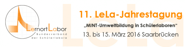 Vom 13.-15. März 2016 fand die 11. LeLa-Jahrestagung mit dem Schwerpunktthema "MINT-Umweltbildung in Schülerlaboren" an der Universität des Saarlandes statt. LernortLabor (LeLa) ist der Bundesverband der Schülerlabore e.V., in welchem sich die Abteilung Geographie mit dem "Geco-Lab - Kompetenzzentrum für geoökologische Raumerkundung" sowie der "GIS-Station - Klaus-Tschira-Kompetenzzentrum für digitale Geomedien" beteiligt. Die Jahrestagung bot neben spannenden Plenarvorträgen viel Raum für Vernetzung, Austausch und Diskussion im Rahmen der Podiumsdiskussionen, Poster- und Workshopsessions, Labor-Besichtigungen, Knowledge-Cafés und Abendveranstaltungen.